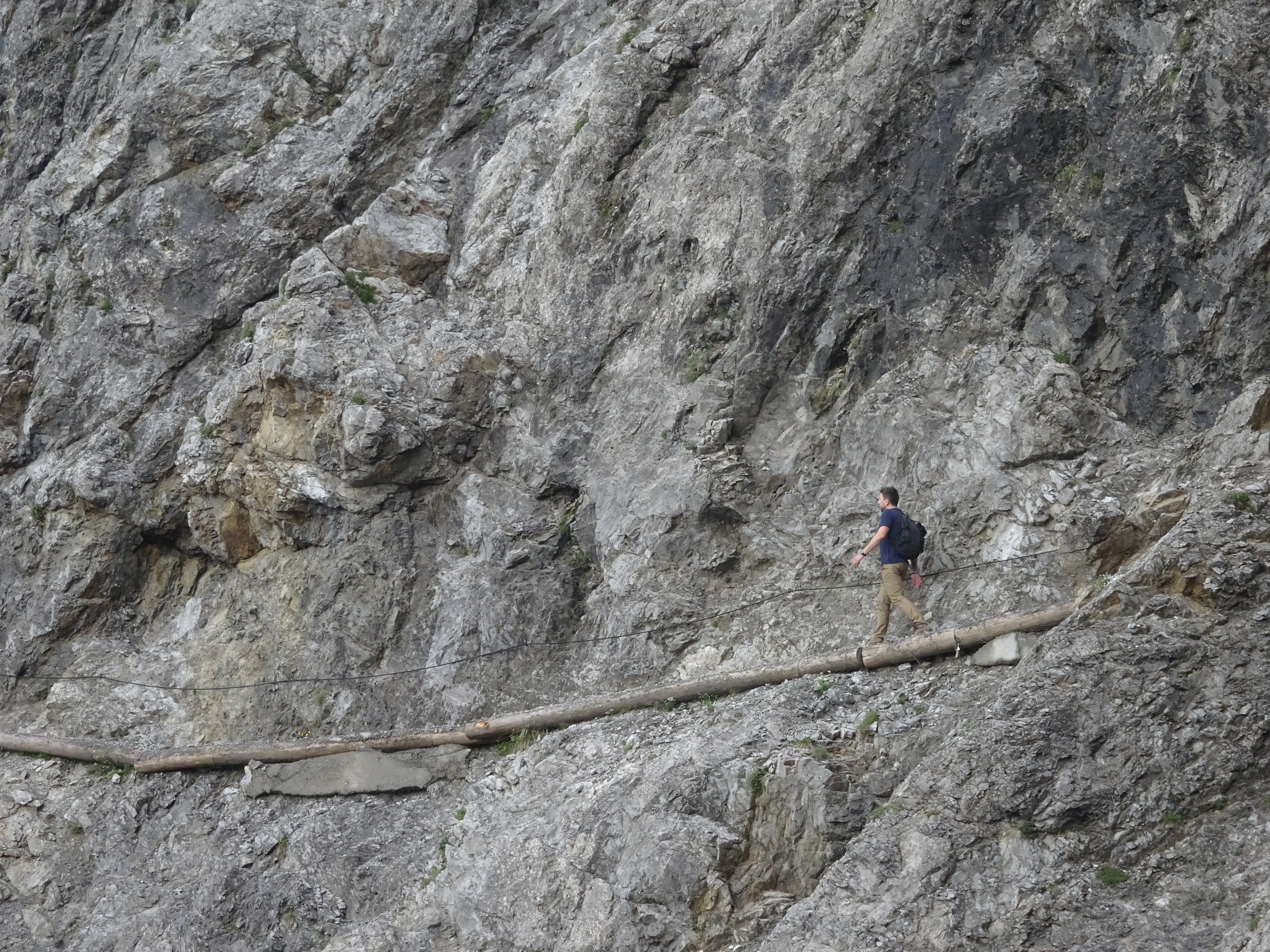 Le départ se fait à Gaflei, à 1400 mètres d’altitude, dans les bois et les pâturages au milieu des vaches, puis mène dans la roche. C’est là que cela devient plus intéressant. Le chemin est fait de ponts suspendus, de passages aériens (sécurisés par des câbles), de mini via ferrata. C’est l’aventure, et c’est le prix à payer pour mériter les superbes vues.