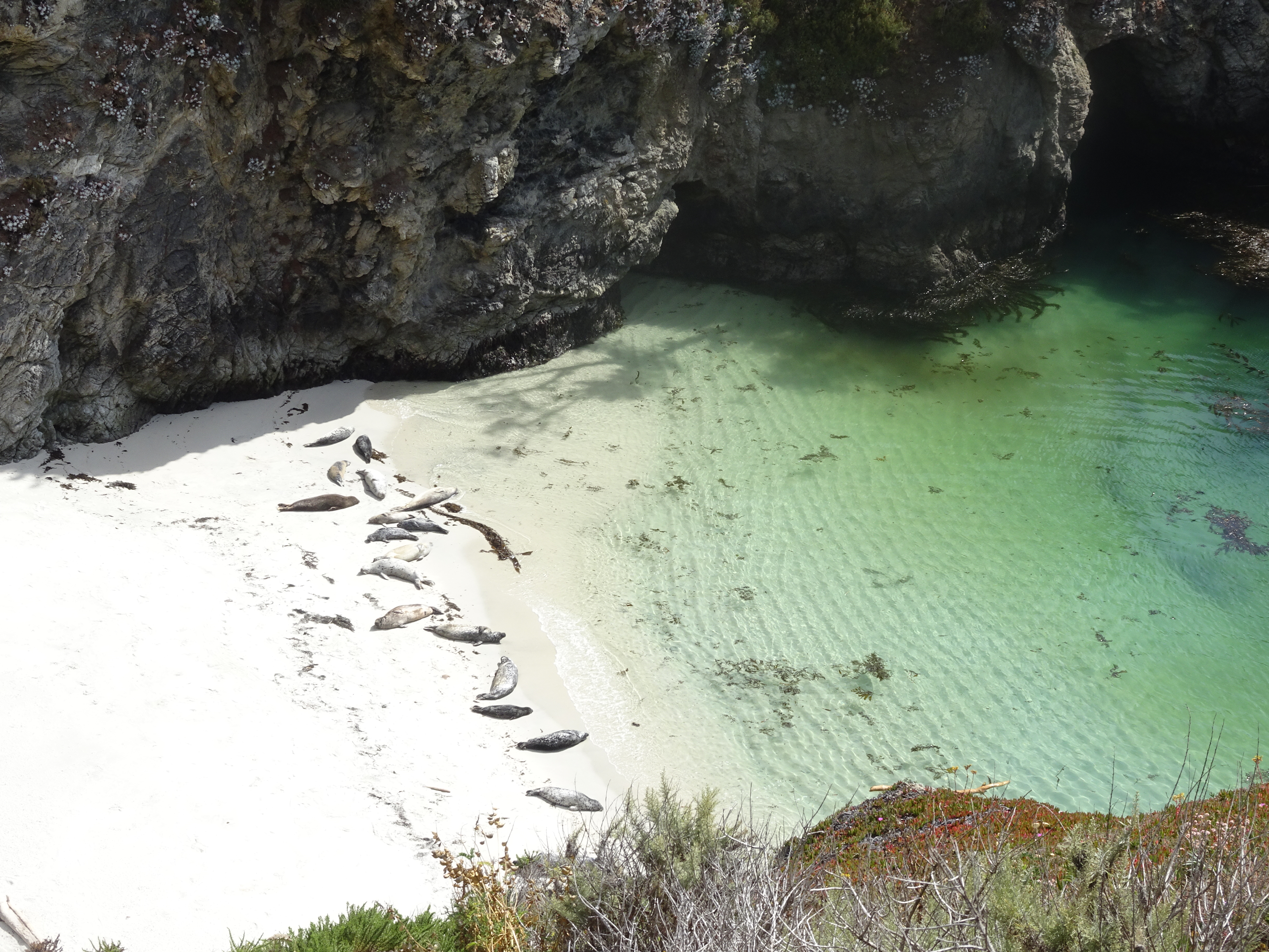 Notre dernière étape sur la Highway 1 était la réserve naturelle de Point Lobos, où il est possible de faire de belle marches, de voir de magnifiques petites criques (avec beaucoup d’algues !) et, avec un peu de chance, d’observer des animaux sauvages (loutres de mer, phoques, baleines,…) ! Malgré nos regards insistants vers l’océan, aucune baleine à l’horizon lors de notre passage !