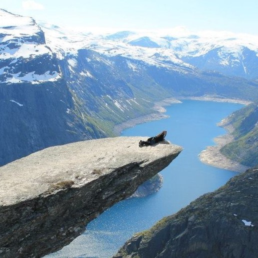 Pendant mon voyage en Norvège, avec deux amies, nous avons décidé de faire la fameuse randonnée du Trolltunga. Vous voyez le rocher du Roi Lion, quand Mufasa présente son fils Simba? Hé bien le rocher de Trolltunga ressemble à ça : un promontoire qui s’avance dans le vide à plus de 1100 mètres d’altitude et qui surplombe le lac de Ringedalsvatnet. Trolltunga signifie « langue du troll » et est une randonnée de renommée mondiale.