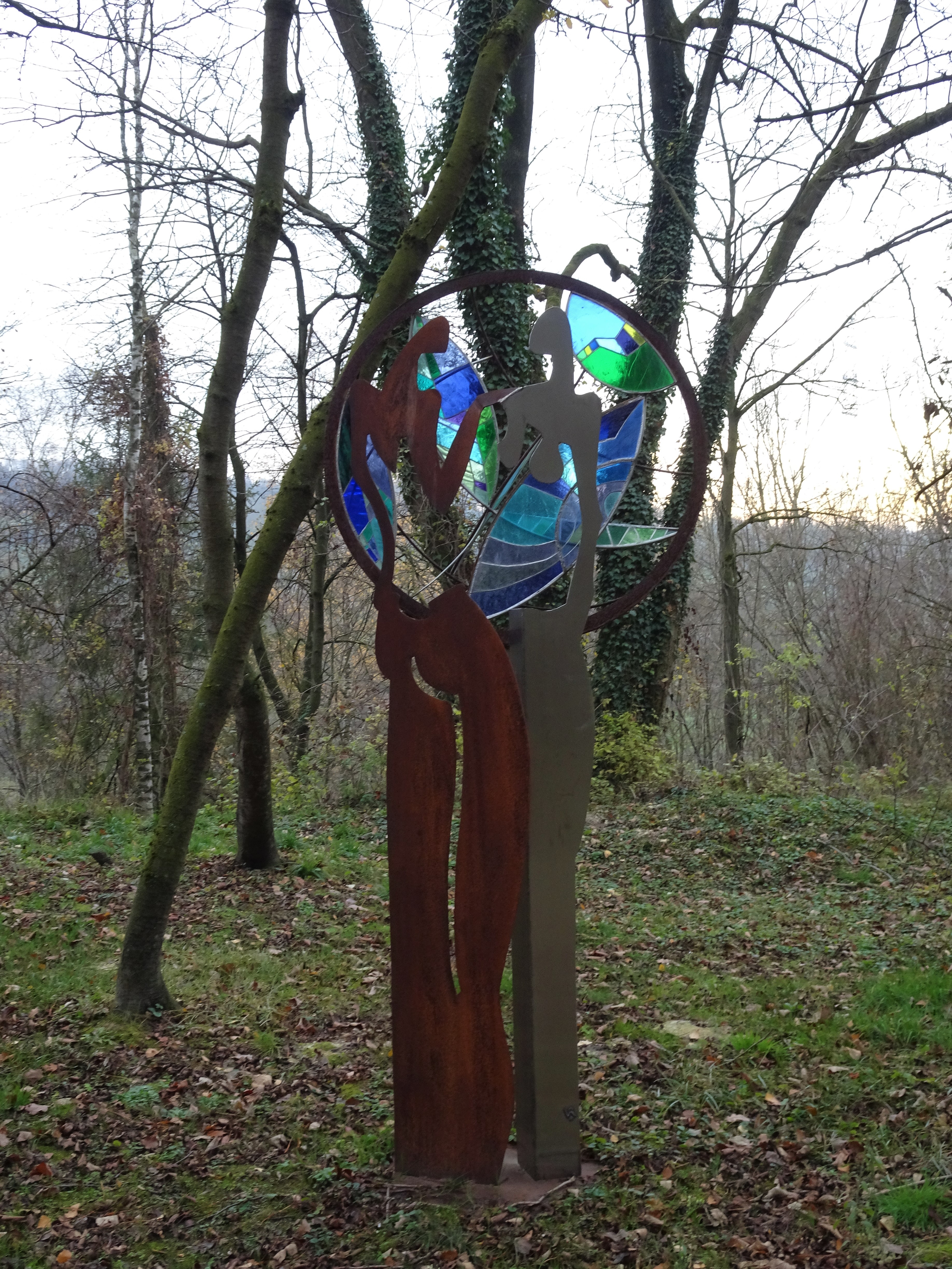 Au sommet, vous marcherez ensuite sur la plateforme en découvrant de plus près les quatre chérubins dominant la vallée du Geer.