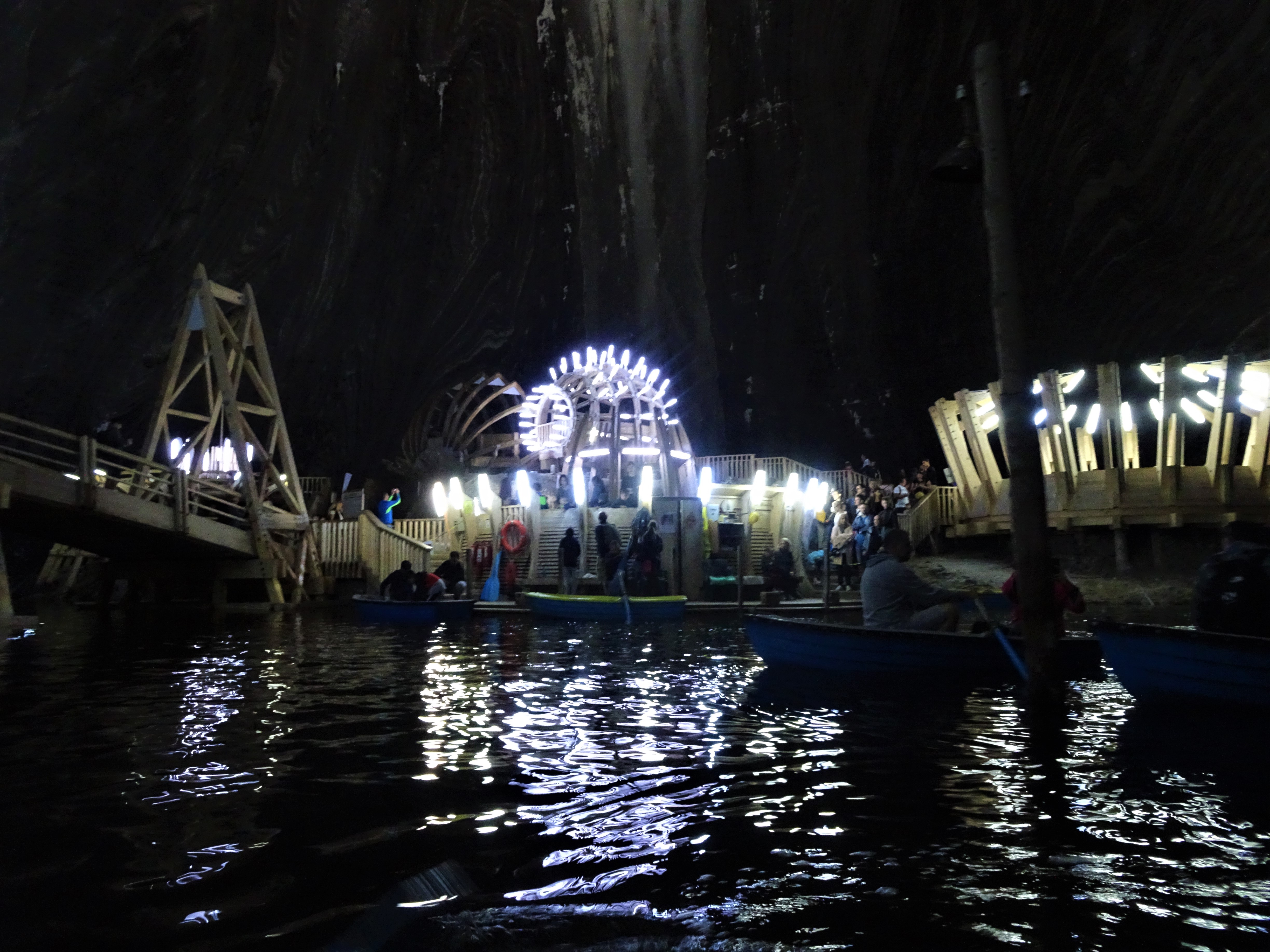 Vous pourrez également faire du canoë sur le somptueux lac Mina, un étang souterrain mystérieux suscitant l’émerveillement dans les yeux de tous ! Pour tout vous dire, c’est la partie que j’ai préférée dans la mine 🙂