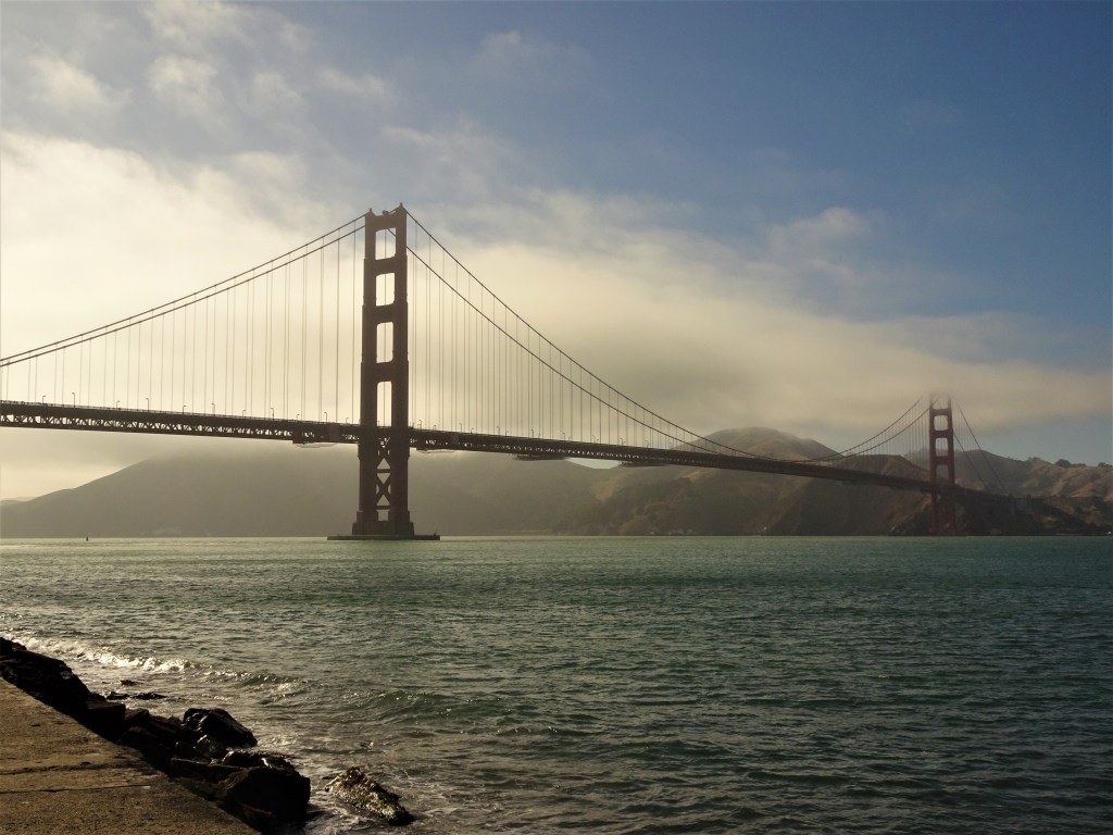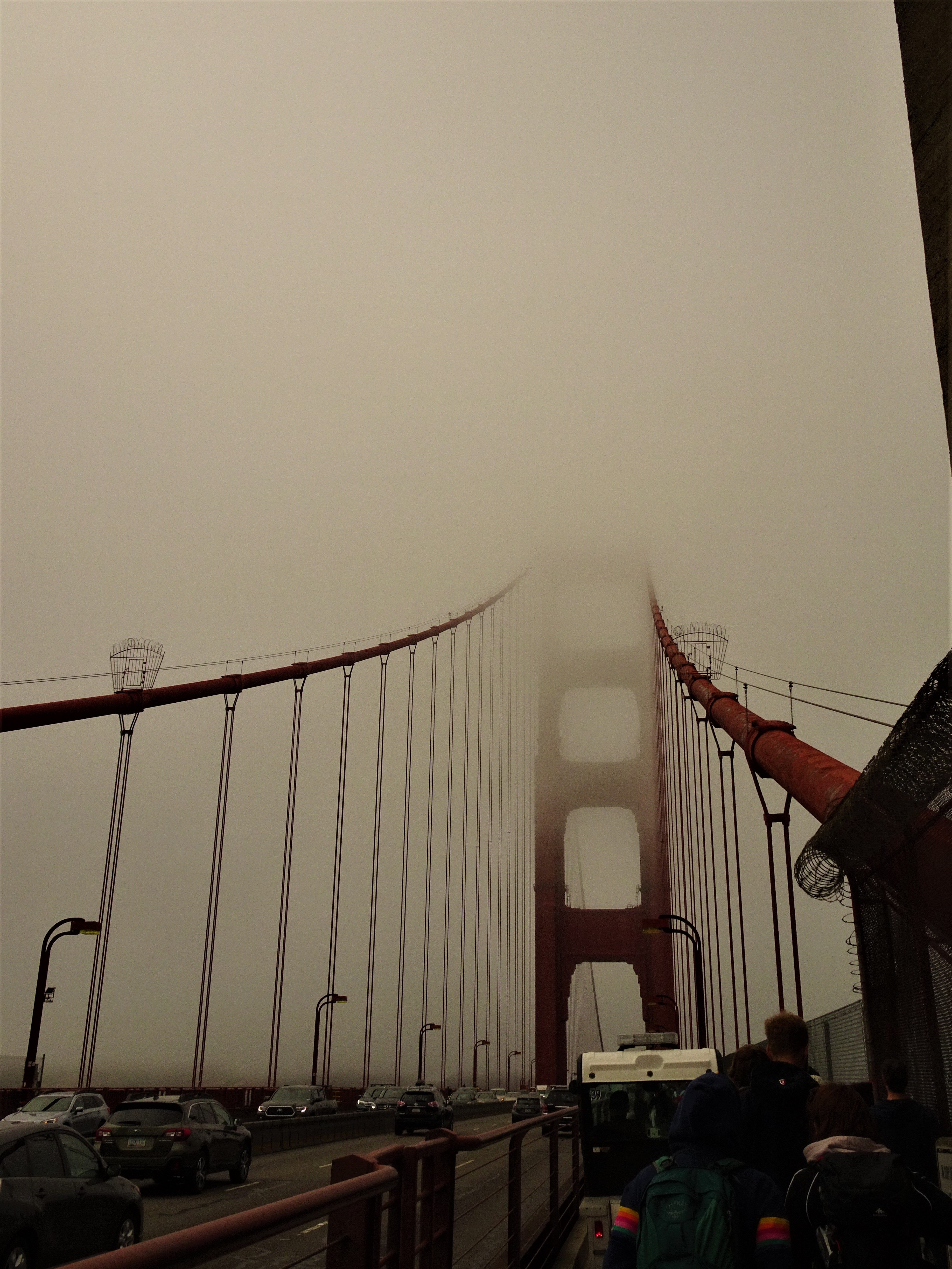 C’est LE pont, l’emblème de la ville qu’on a tous vu au moins une fois dans les films ! Il est long de plus de 2 kilomètres et haut de 230 mètres. Il traverse le Golden Gate, le détroit par lequel la baie de San Francisco débouche dans l’océan. Quand nous sommes arrivés, il était entièrement dans la brume. Le temps de l’approcher davantage, la brume s’était déjà bien atténuée. Nous étions soulagés !