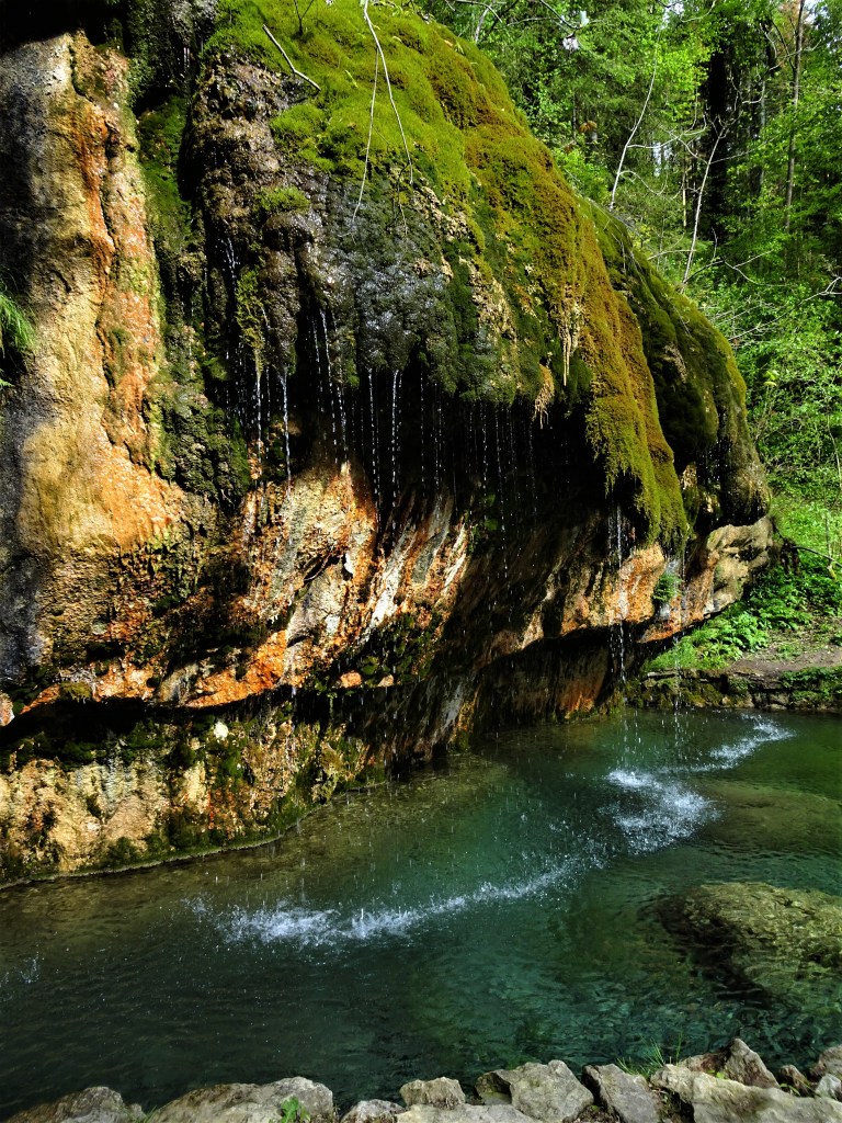 N’hésitez pas à vous asseoir sur le petit banc et à profiter des couleurs magnifiques de l’eau, de la roche et de la mousse.