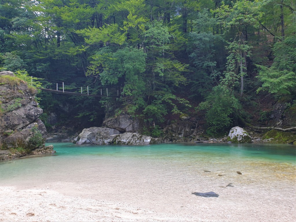 Le Soča trail est un sentier long d’environ 25 kilomètres qui vous emmène dans le parc national du Triglav, le long de la magnifique rivière Soča. La promenade est agrémentée de plusieurs passerelles et est assez facile. De nombreux petits chemins hors sentier vous permettent de descendre sur la rive et sur les petites plages pour vous baigner. Attention, l’eau est assez froide !