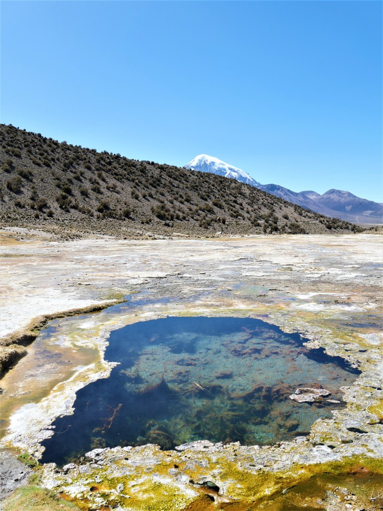 Un peu en dehors du village, il est possible de se baigner dans des sources chaudes. Il y a 3 lieux différents, tous rassemblés plus ou moins au même endroit. Deux des sources coûtent 10 bolivianos chacune et sont beaucoup plus simples et naturelles, l’autre coûte 30 bolivianos et ressemble plutôt à une piscine avec aménagements pour se changer. Sur maps, l’endroit est renseigné comme « Aguas termales Colchapata ». Il est possible d’y aller à pieds en environ 1h30, en partant du centre de Sajama.
