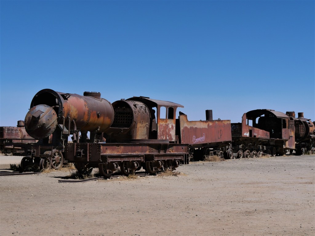 Jour 4 : départ vers 6h pour voir le coucher de soleil dans le salar. Promenade sur l’île aux cactus avec un déjeuner puis temps pour faire les photos classiques en plein milieu du salar. Diner dans le salar puis direction vers l’hôtel de sel et puis vers Uyuni pour voir le cimetière de trains. Retour vers Tupiza.