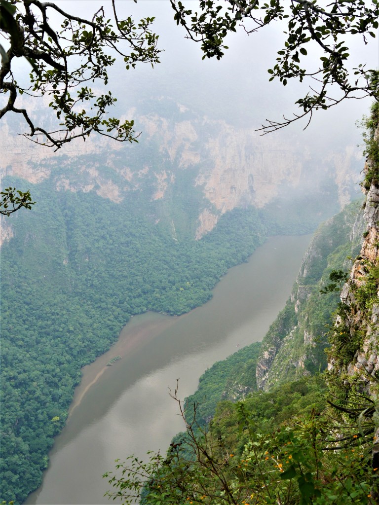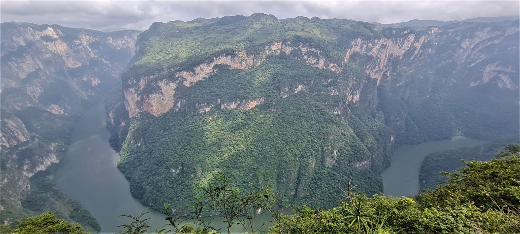Pour cette visite, nous avons décidé de prendre un tour organisé car après avoir calculé le total des entrées et des colectivos en autonomie, on se rapprochait du prix de l’agence. Nous avons donc fait le tour de plusieurs agences et avons choisi le meilleur prix qui est de 400 pesos (20 euros) par personne et qui comprend : les transports aller et retour, les entrées, le tour en bateau, trois miradors (il y en a cinq au total) et la visite de Chiapa de Corzo.