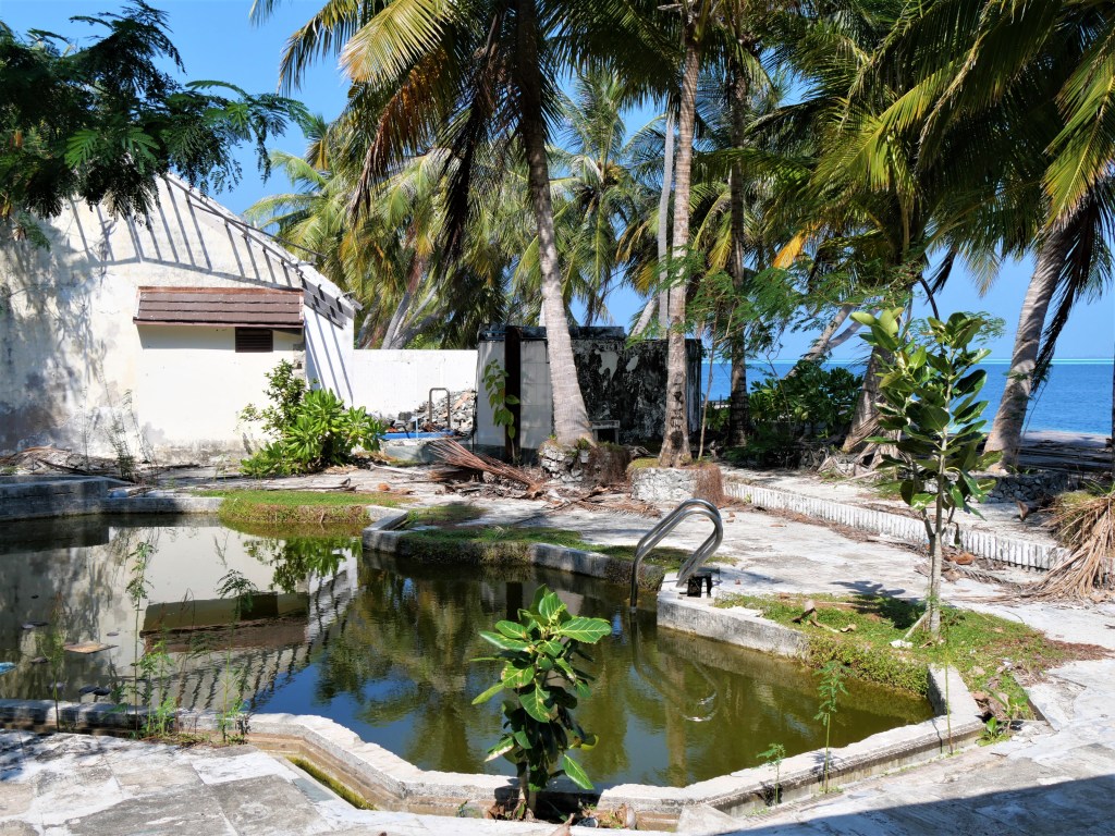 L’un des intérêts principaux de cette ile est de pouvoir se balader librement dans les vieux bâtiments abandonnés. Une sorte d’Urbex aux Maldives ! Une moitié des bâtiments de l’ile est complètement détruite mais l’autre moitié se visite sans problème. Vous visiterez la réception, le beau restaurant sur pilotis, le poolbar, les chambres, les cuisines, la laverie, la boucherie,… C’est vraiment super sympa ! D’autant plus que toutes ces pièces ne sont pas vides puisqu’il reste de nombreux meubles, documents,… Une excursion originale dans ce coin du monde ! Et si vous voulez voir à quoi ressemblaient les lieux avant, ça se passe par ici.