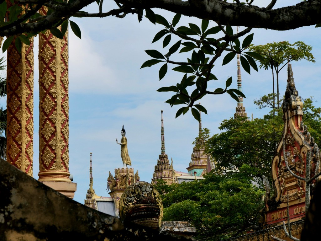 Nous avions une journée à passer à Soc Trang avant de partir pour Ben Tre, et nous en avons profité pour visiter quelques pagodes, entre deux grosses pluies. On a finalement été super impressionnés par leur beauté et on aurait aimé pouvoir en visiter davantage !