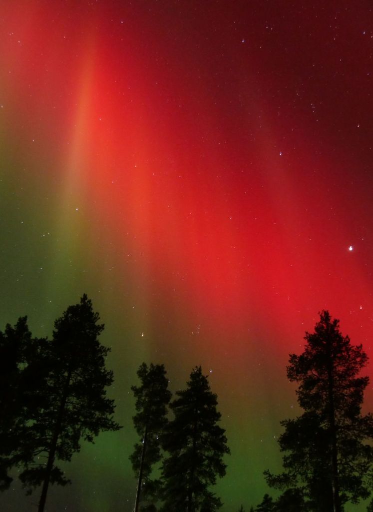 Les premières que j’ai vues, c’était à 20 minutes en voiture de Rovaniemi le 31 décembre. J’ai passé le réveillon sous les aurores boréales et ça restera probablement le plus beau réveillon de ma vie ! Elles étaient un peu moins puissantes, moins colorées et moins dansantes que celles d’Islande mais très belles quand même. Et j’ai vu du rouge comme je n’en avais jamais vu à l’oeil nu !